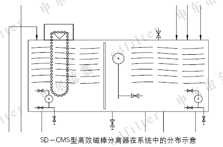 SD-CMS型高效磁棒分离器是我公司开发的又一磁性颗粒分离设备,主要应用于冷轧乳化液、磨削液、机