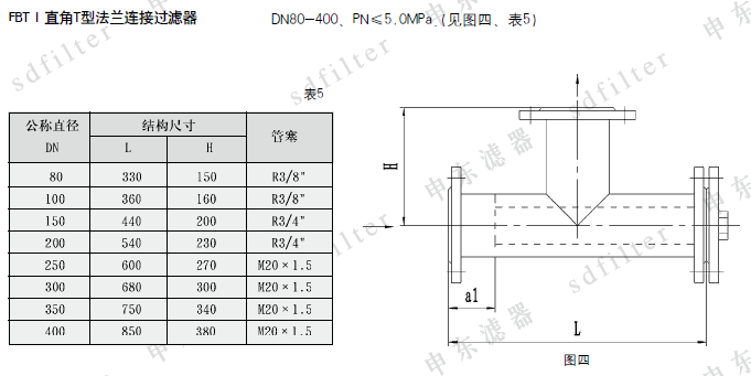 3、公称通径80、公称压力4.0MPa、滤网规格30目/英寸,主体材质为不锈钢的直通篮式过滤器,则标记为:FBLⅠ80-4.5/30S