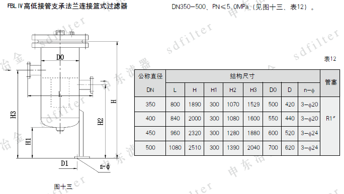 FBLⅢ高低接管法兰连接篮式过滤器
