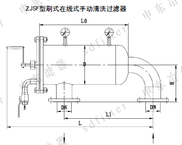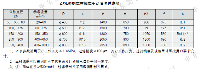ZJS系列刷式手动清洗过滤器是一种过滤与清洗同步实现的过滤装置,由碳钢或不锈钢筒体、不锈钢刷、不锈钢楔形滤网、压力表及排污阀等组成。流体经过滤器后,杂质被拦截在滤筒内壁,当进出口压力表产生一定压差时,无需停机拆卸过滤器,只要打开排污阀轻轻转动手柄,使刷子在滤筒内壁作圆周运动,把杂质从滤筒光滑的内壁上刷下,随水力方向排出,即可完成清洗过程。