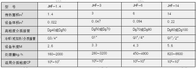 可以根据工艺条件和工艺要求设计并制造传热面积100m2以上的J H F型静态混合器,下表给出的是最常用的小型JHF型静态混合器,与其他型号不同它以传热面积的数值表示其规格。