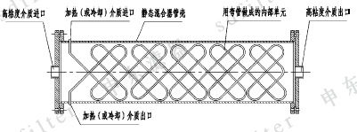 JHF型静态混合器的工业用途可以分为两类:第一类是用于高粘度介质的换热过程,第二类是用作聚合反应器。