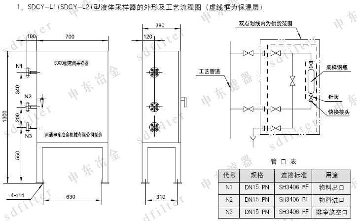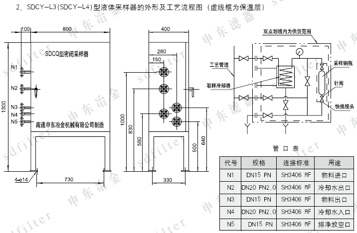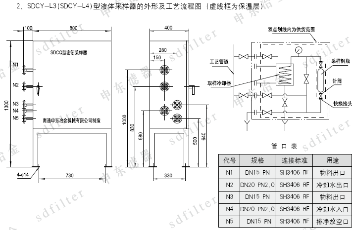 SDCY系列密闭采样器主要由箱体、采样瓶、缓冲罐、快速接头、压力表、阀门、不锈钢管道及连接法兰等元件组成。适用于石油、化工装置中各类有毒、有害、易燃、易爆等危险性气、液介质的采样。本系列采样器密封性好,操作安全简单,采样准确,符合环保及防火、防爆规范的要求。采样瓶联接接头采用进口快卡式结构,取样方便、安全,无泄漏。