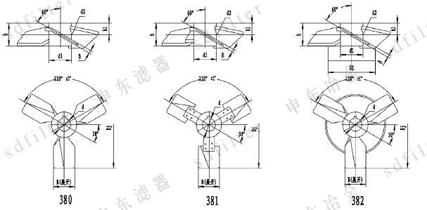旋桨式搅拌器的桨叶前部桨面与运动方面的倾角是连续变化的(与推进式桨一样),桨叶后部份像斜叶桨面一样有一个固定倾角,所以它综合了推进式桨和斜叶涡轮式桨的特性,是一种应用广泛的搅拌器,它类似推进式属轴流形,循环能力大,动力消耗小,又像斜叶涡轮桨剪切性能得到了提高,因此它的适用范围比较大。低粘度液体混合、分散、溶解、固体悬浮、结晶、传热、液相反应等过程都适用,在一些气体吸收过程也得到了应用。三宽叶旋桨式是较普遍使用的型式,常用介质粘度范围μ<104cP,常用运转速度n=30~500rpm,v=3~15m/s,常用尺寸DJ/D=0.2~0.5,B/DJ=2.4(宽),常用左旋,可做成右旋。