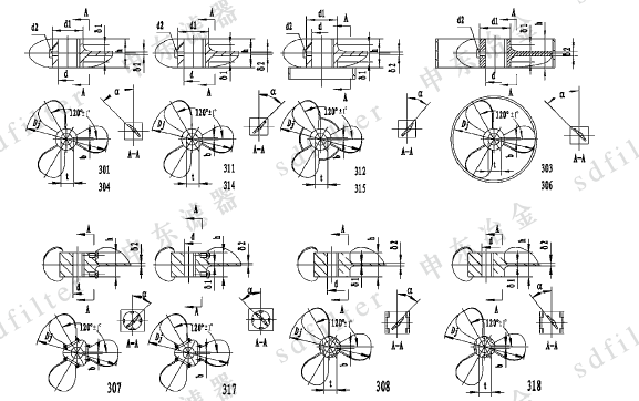三叶推进式是最典型的轴流型搅拌器,高排液量,低剪切性能;采用挡板或导流筒则轴向循环更强。排出性能明显提高,因为它循环能力强,动力消耗低,在低粘度,大容量均相、混合过程中应用最能体现它的优势,在低粘度的液体传热、反应、固液比小时的悬浮、溶解等过程中应用广泛。可调推进式的桨叶可转动±15°,调整倾角,在试验性的工艺过程中作用很大。可拆推进式的桨连轮毂分成三辨,组装方便,用在需要拆成小件的场合。常用介质μ<2000c P,常用运转速度n=100~500r p m,ν=3~15m/s,最高转速可达1750r p m,常用规格S/DJ=1或2,DJ/D=0.2~0.5,表面要求抛光处理的必须选用焊接型。