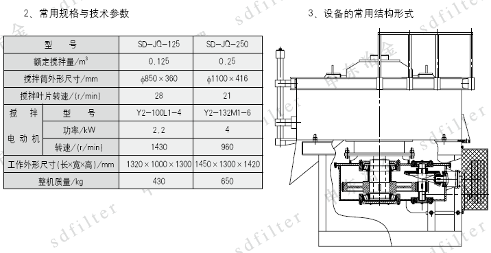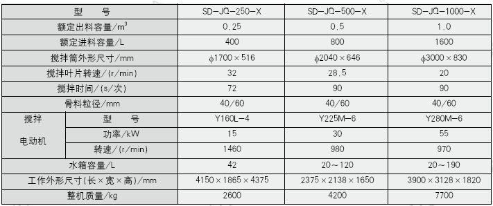 一、产品简介 三、产品分类 四、SD-JQ-□ 型强制式搅拌机 (三)常用规格与技术参数 (四)设备的常用结构形式 |
