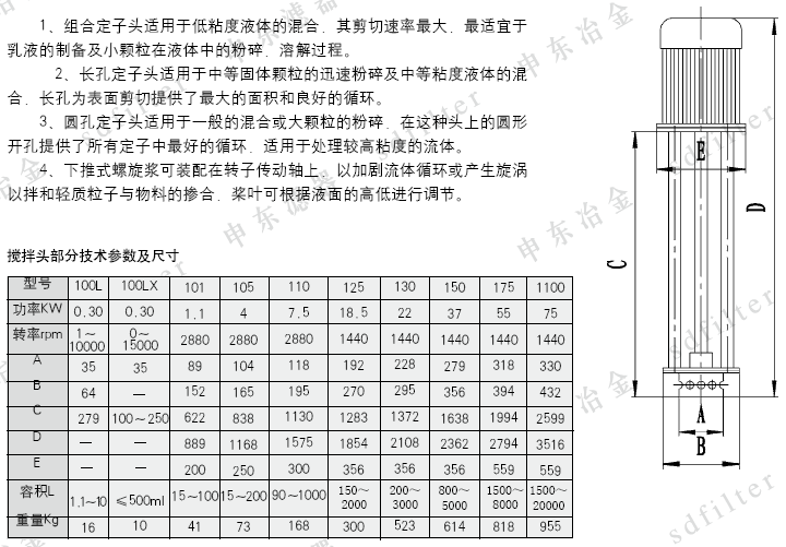 我厂成功地研制了美国R0SS公司具有90年代世界先进的最新产品,属国内首创的高剪切混合乳化机。高速剪切的机械转动是本设备的关键。转子刃口与定子内壁合理的间隙,确保了被加工物料每分钟要承受几十万次的剪切使用。线速度由国内的3-8米/S提高到15-20米/S,可使物料从生物学中的细胞破碎到化学体系中的多种反应物的乳化,物料颗粒尺寸小到0.5μm以下,是目前国内最理想的搅拌设备。 |