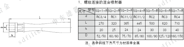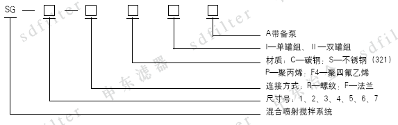 SG系列混合喷射搅拌系统型号和尺寸号的安排