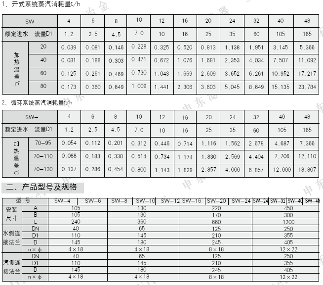 SW-4~SW-24 P1+0.05≤ P0≤0.6MPa 式中:P0—— 蒸汽工作压力 (MPa)