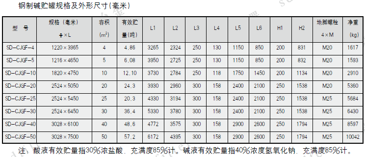 本公司生产的贮罐主要用于水处理系统工程中,贮存浓酸、浓碱等。贮罐为卧式圆形容器。 2、钢制酸碱贮罐 |