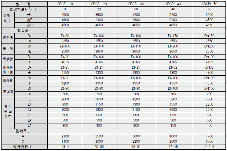 二、型号说明 三、主要技术参数 四、外型管口及基础尺寸 五、SDCPI高效除油器外型尺寸及管口方位图 六、SDCPI高效斜板除油器基础尺寸 |