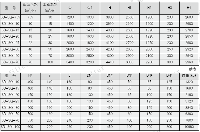 五、SD-SQ型全自动过滤器尺寸参数表