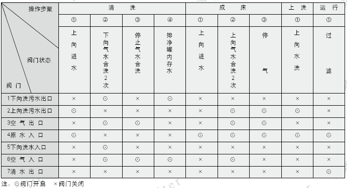 清洗及再运行的操作程序按过滤器正常运行操作程序进行,参见下表。
