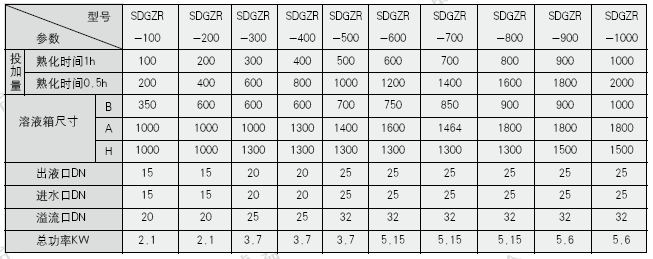 如采用熟化时间0.5h,则选用SDGZR500型干粉投药全自动溶液装置