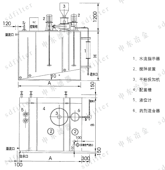 有三个分格的溶液箱和两台搅拌机,可保证药剂的浸润、熟化时间。该装置结构紧凑、占地面积小、维修简单、管理方便。