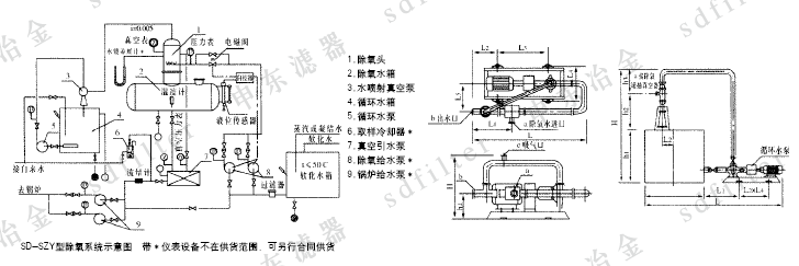 SD-SZY型和SD-ZSZY型除氧装置由除氧头、除氧水箱、抽真空装置和真空引水泵等组成,可以低位安装,适用于蒸汽锅炉给水除氧,热水采暖锅炉补给水除氧以及其它需要除去水中气体的系统,它具有以下几个优点: