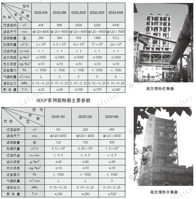 本设备可分两个系列。SDGZ系列用于煤粉制备系统的收粉与除尘;SDGP系列用于气力输送系统的煤粉回收。
